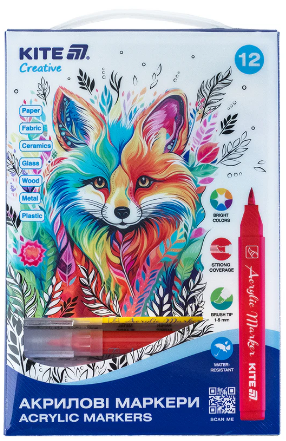 Набір маркерів-пензликів акрил. "Kite" Creative №K-1159 12шт(12)