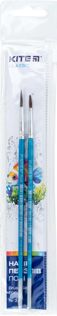 Набір пензлів 2шт "Kite" №K-347 (поні,круглий №3,5) в пеналі(50)