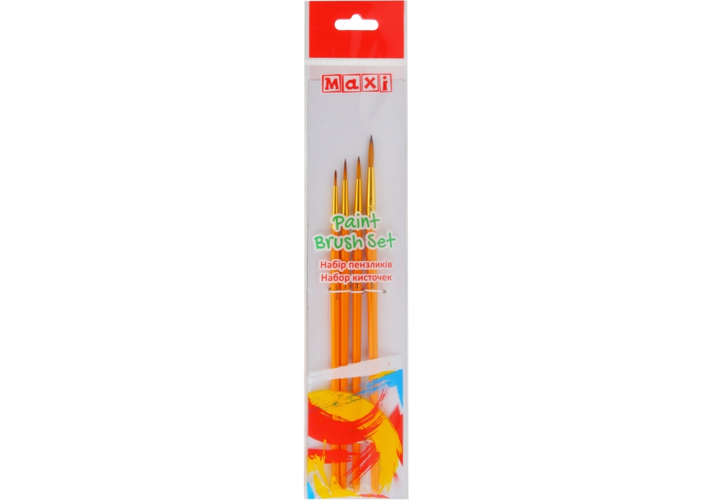 Набір пензлів 4шт "Maxi" №MX60883 синтетика (круглі №1,3,3/0,5) коротка ручка
