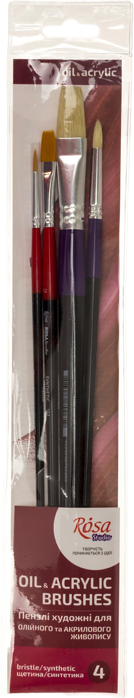 Набір пензлів 4шт "Rosa Studio" №186126 щетина(4,10) синтетика(2,12)