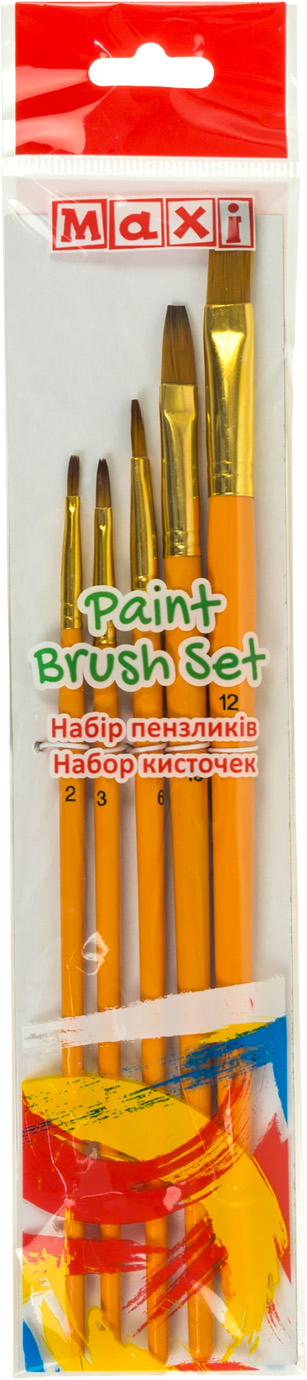 Набір пензлів 5шт "Maxi" №MX60876 синтетика (пласкі 2,3,6,10,12) коротка ручка