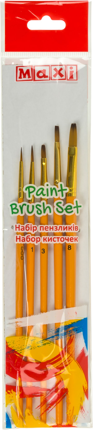 Набір пензлів 5шт "Maxi" №MX60885 синтетика (круглі №000,1 пласкі №3,5,8) коротка ручка