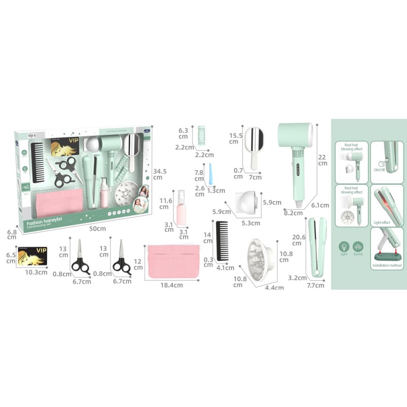 Набір перукаря:фен,праска для вол.,аксес.,світло,звук,на бат,в кор,50х7х35см№А2011-2(24)КІ