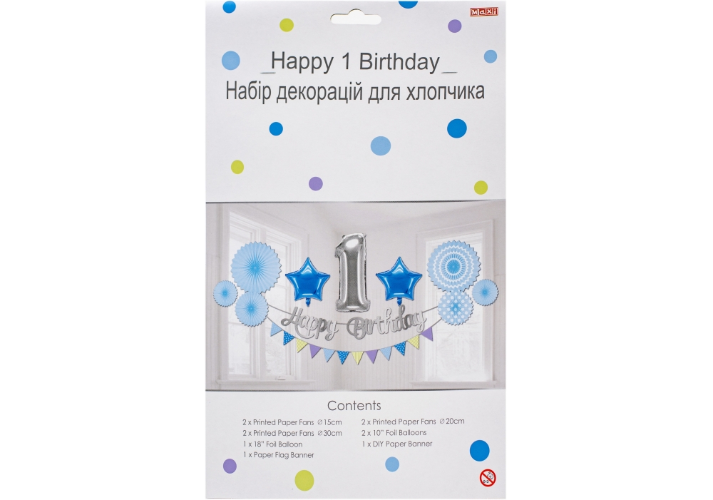 Набір прикрас для хлопчика "Maxi" "Happy 1 Birthday" №MX250(12)
