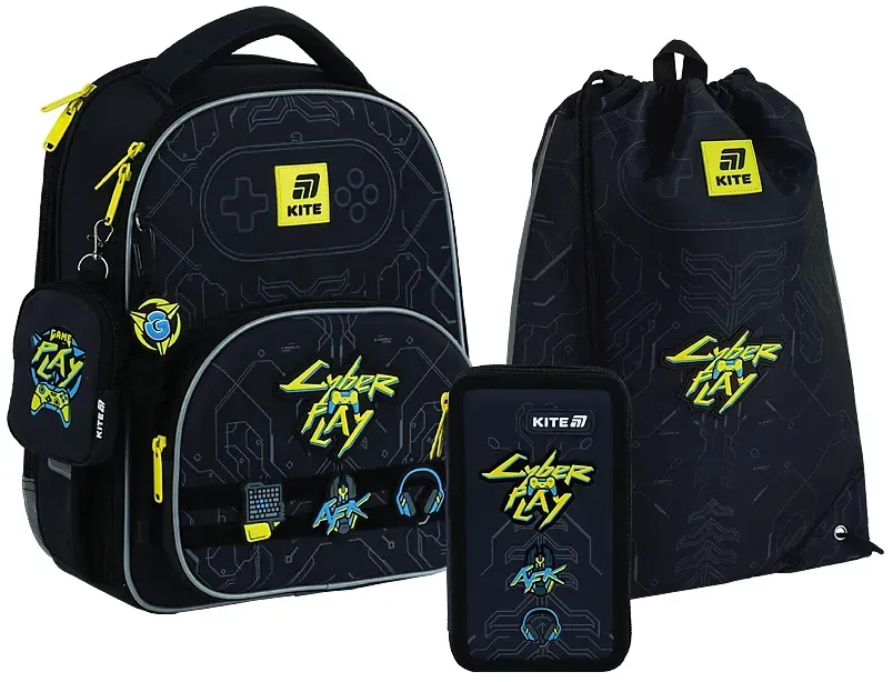Набір: рюкзак 2від.,2карм.+пенал+сумка для взуття "Kite" Cyber №SET_K25-556M-2(4)