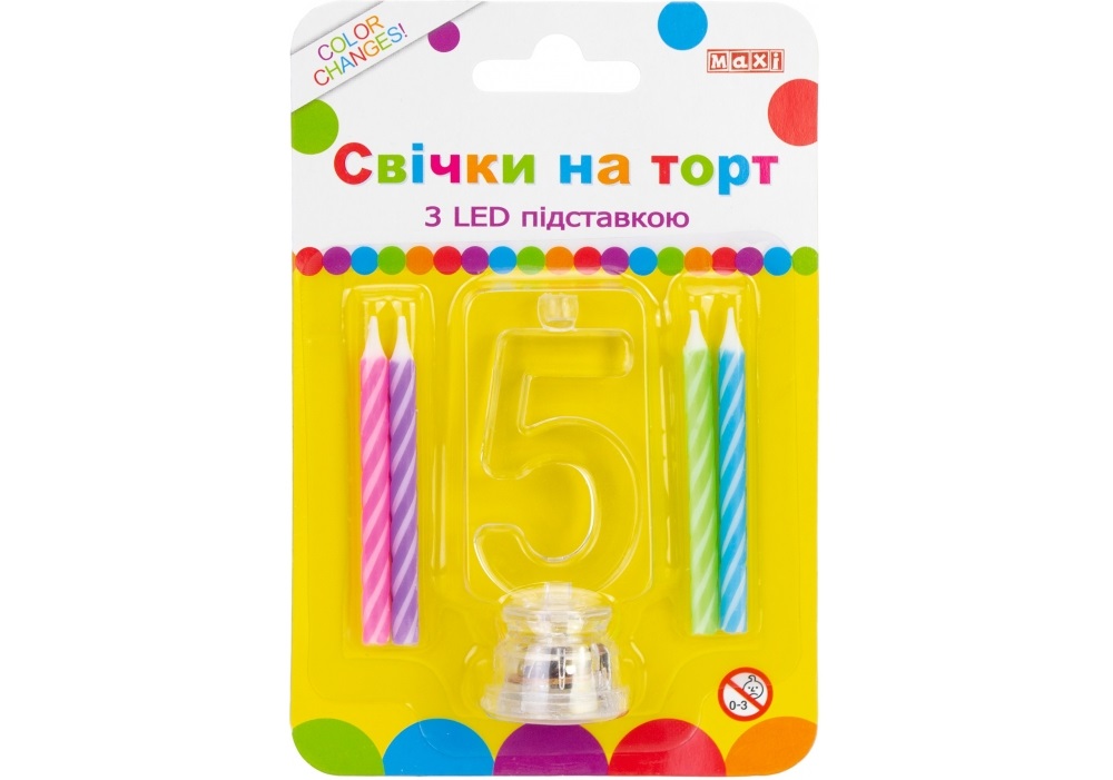 Набір свічок в торт 4шт з LED,що світиться "Цифра-5" №MX701007-5(12)