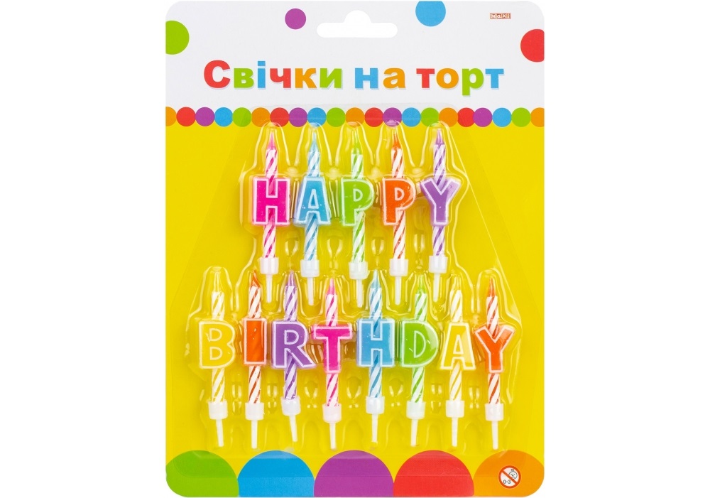 Набір свічок в торт "Happy birthday" 13шт,6 см, з підставками №MX620204/Maxi/(24)(144)