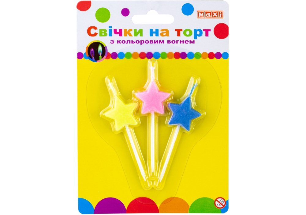 Набір свічок в торт "Stars" 3шт з кольор. вогнем №MX620224-3сt/Maxi/(24)