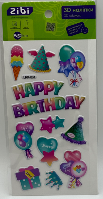 Наліпка 3D "Happy Birthday Райдужна вечірка" 18см, KIDS Line №ZB.63352/Zibi/(20)