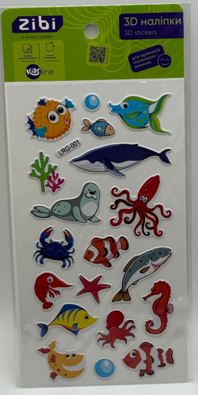 Наліпка 3D "Морська фауна" 18см, KIDS Line №ZB.63343/Zibi/(20)