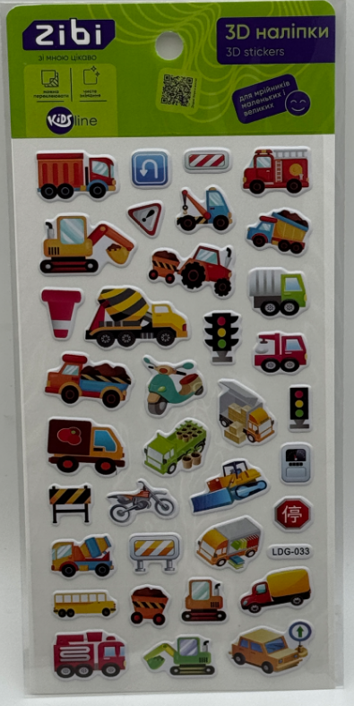 Наліпка 3D "Вантажівочки" 18см, KIDS Line №ZB.63316/Zibi/(20)