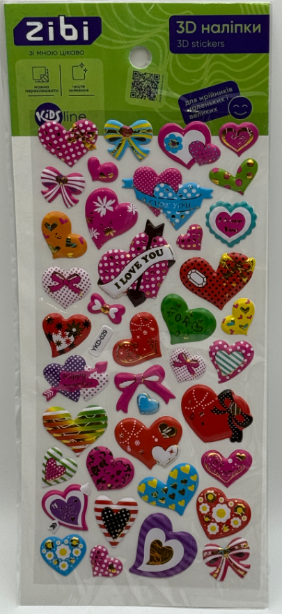 Наліпка 3D "Закохані серця" 23см, KIDS Line №ZB.63386/Zibi/(20)