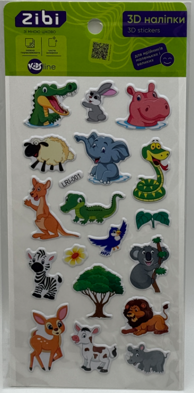 Наліпка 3D "Звіряти з Африки" 18см, KIDS Line №ZB.63358/Zibi/(20)