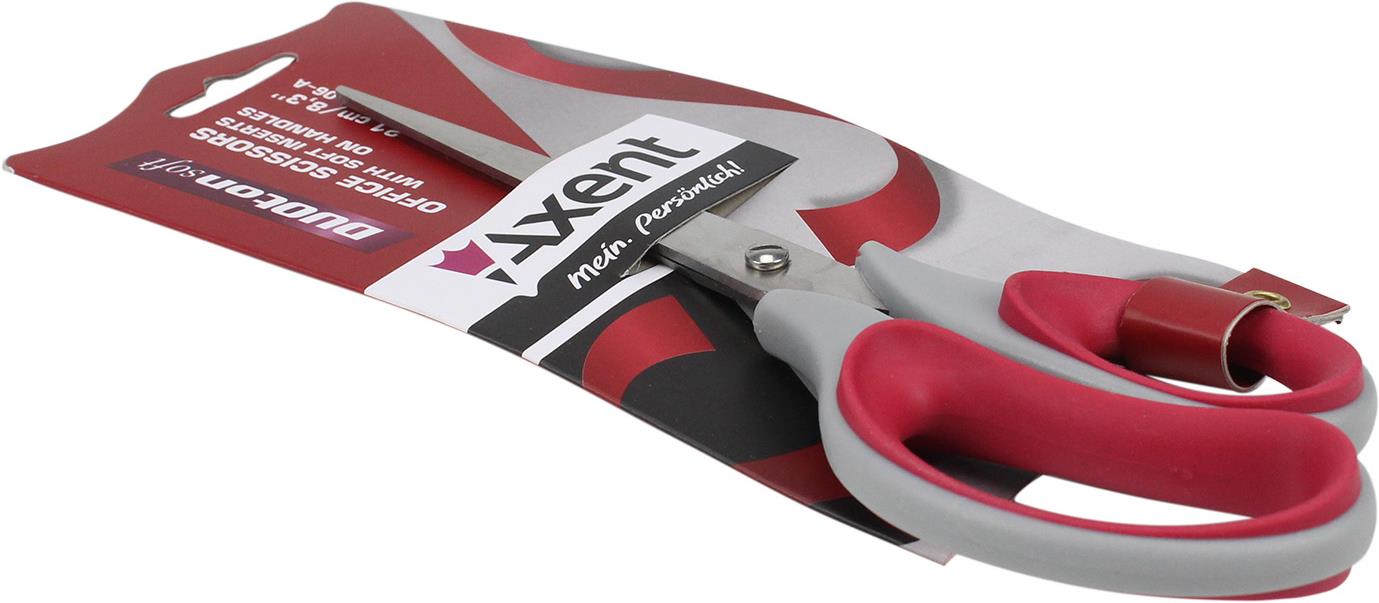 Ножиці офісн. "Axent" №6102-06 21см Duoton Soft сір.-червоні(10)(100)