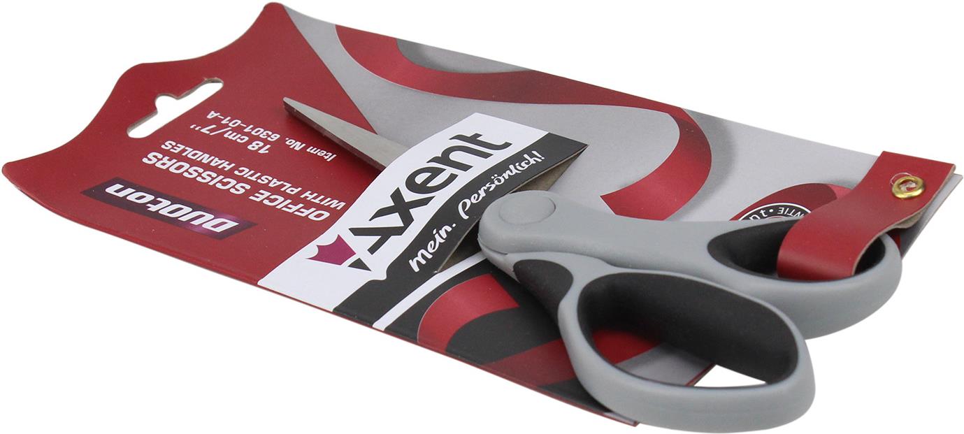 Ножиці офісн. "Axent" №6301-01 18см Duoton сір.-чорні(10)(200)