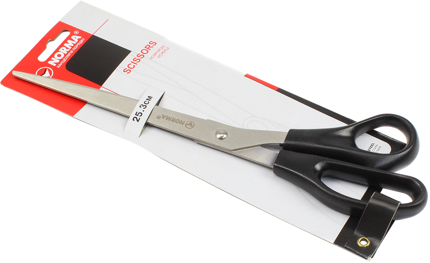 Ножиці Norma підходять для різання паперу, картону, тканини і т.д. Леза виготовлені з високовуглецевої сталі. Ергономічні ручки з ударостійкого АВS-пластика. Довжина ножиць 25,3 см. Картонна упаковка з підвісом.