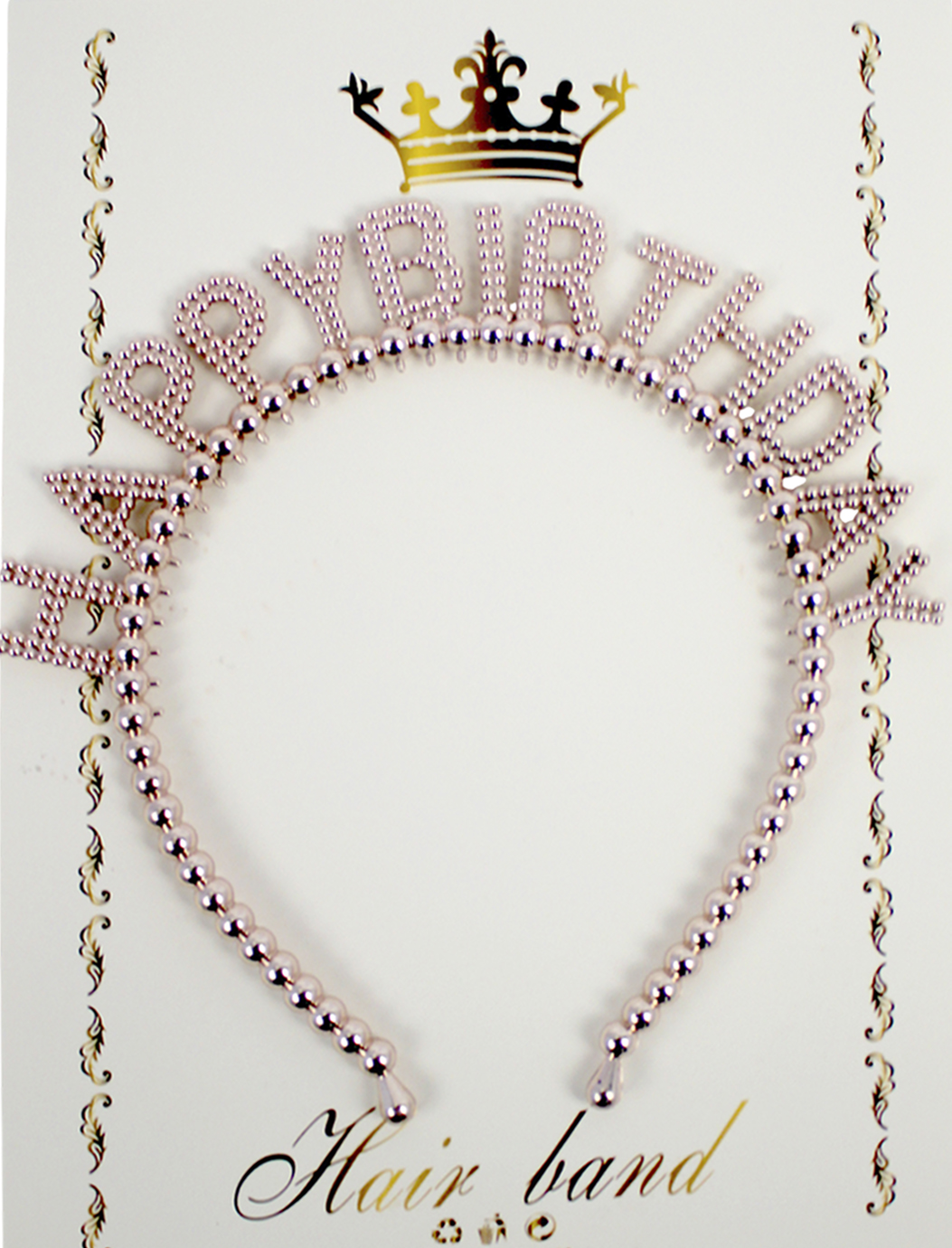 Обруч для волосся "Happy birthday" бусинки рожеве золото №15111(20)