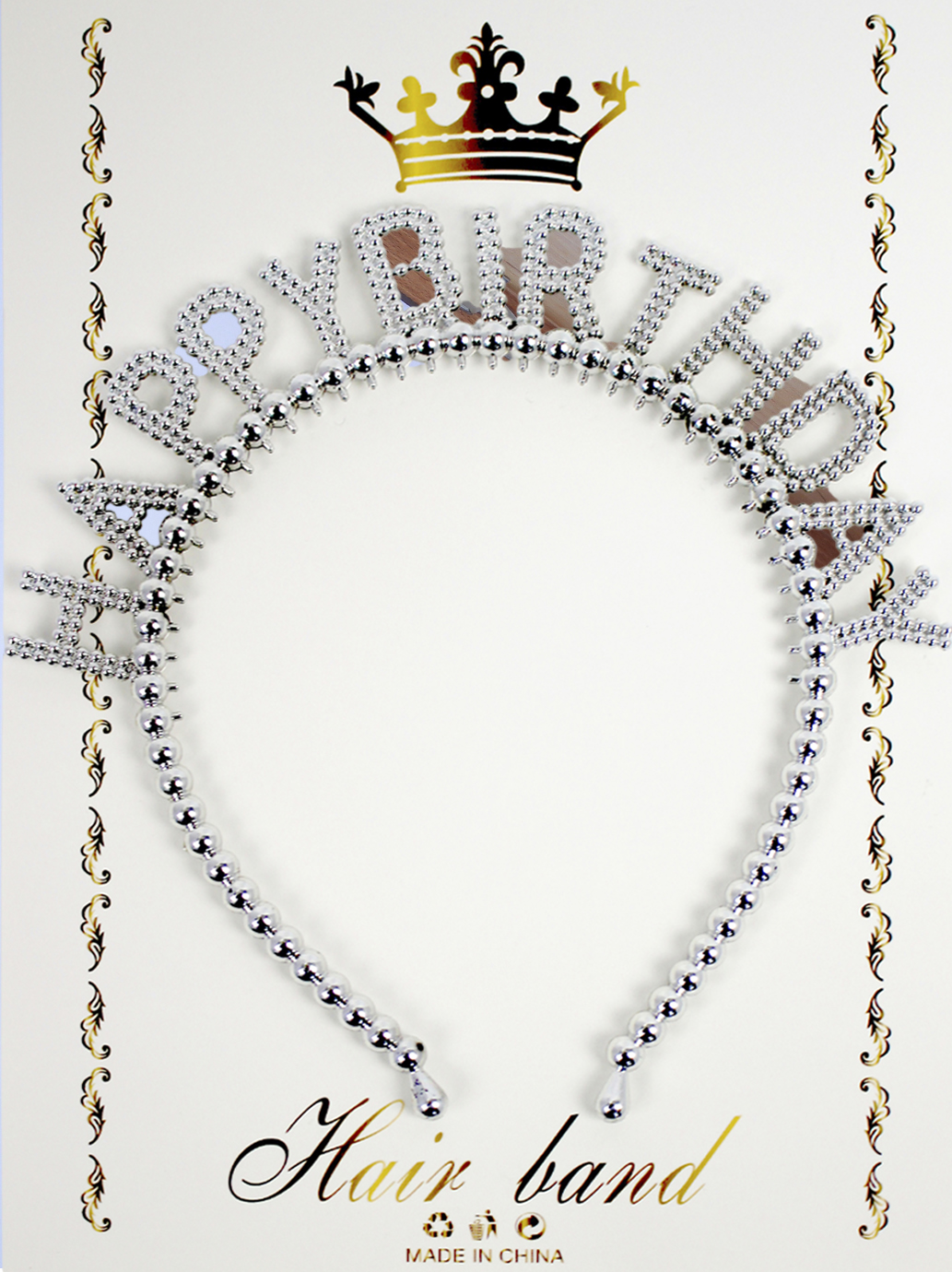 Обруч для волосся "Happy birthday" бусинки срібло №15112(20)