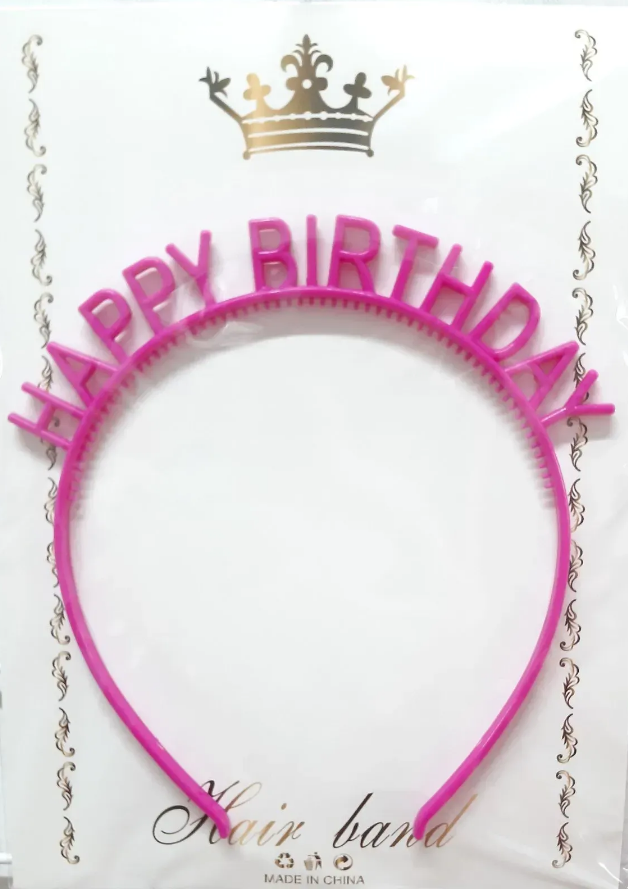 Обруч для волосся "Happy birthday" рожевий №15824(20)