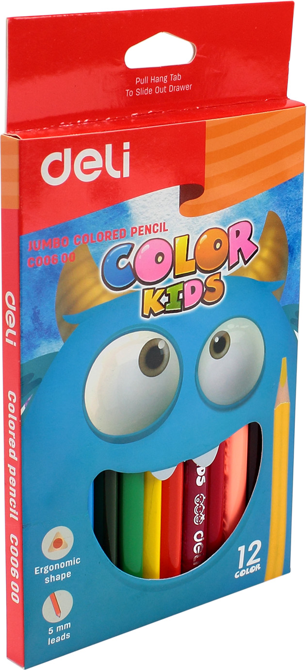 Олівці кольор. 12 кольор. "Deli" №EC00600 Color Kids Jumbo трикут. карт. уп.(24)