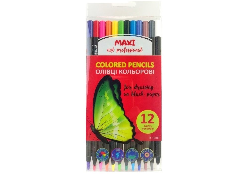 Олівці кольор. 12 кольор. "Maxi" №MX15105 для чорного та білого паперу(12)(144)