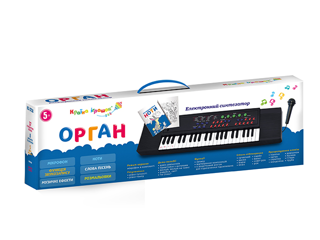 Орган на бат-ці,мікрофон,44 клавіши,8 ритмів,нотна книга,в кор-ці,79х25х9см №KI-3738(10)КІ