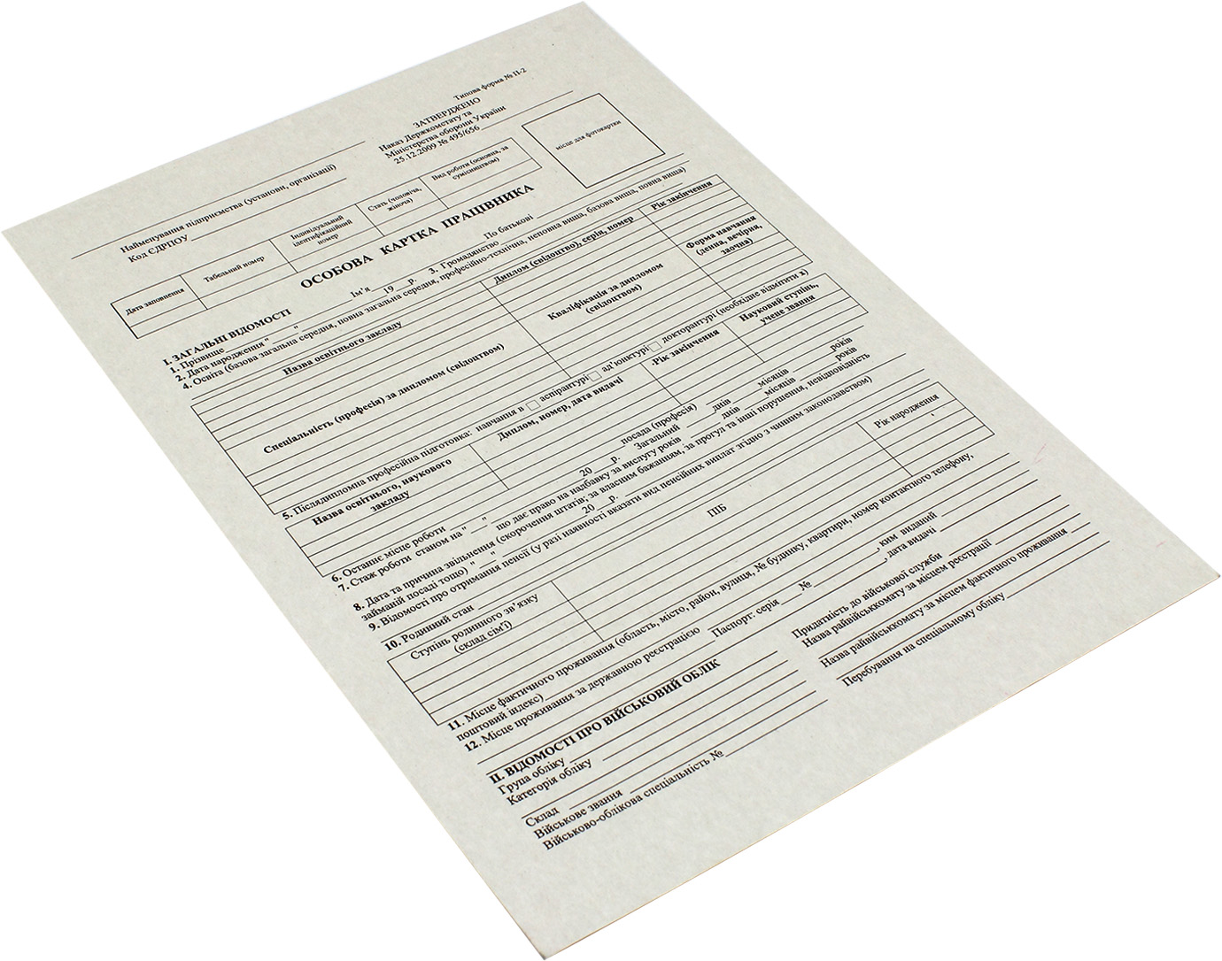 Особова картка працівника А4 двостор. №БК0001(100)(10)