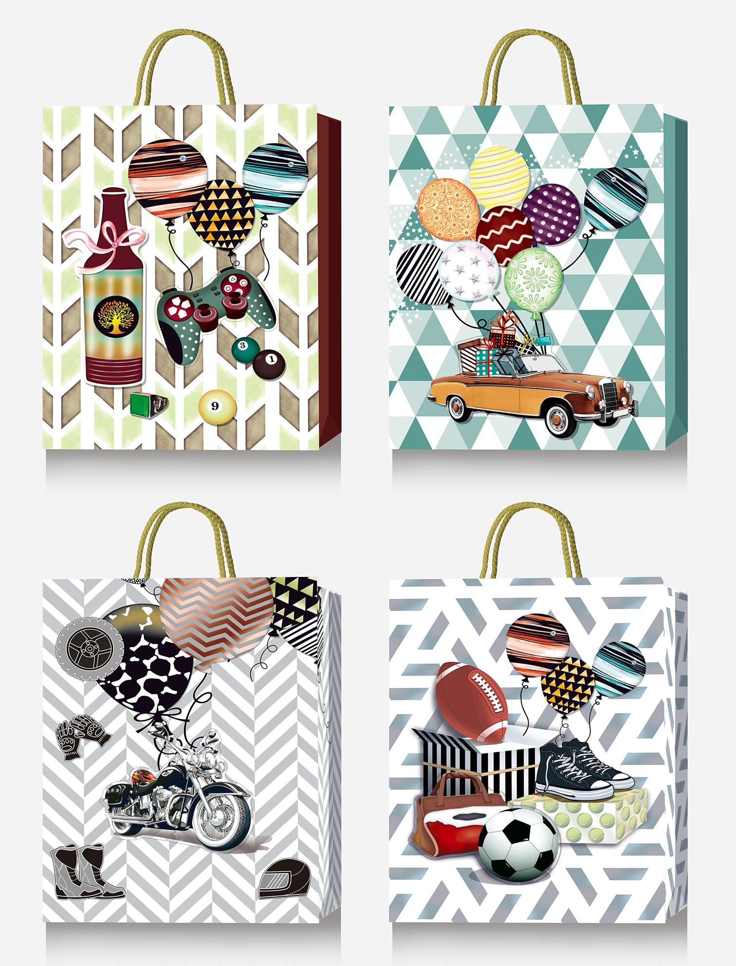Пакет подарунковий "Buromax" 26х32х10см глітер та 3D фігура,4 види №BM.200071(12)