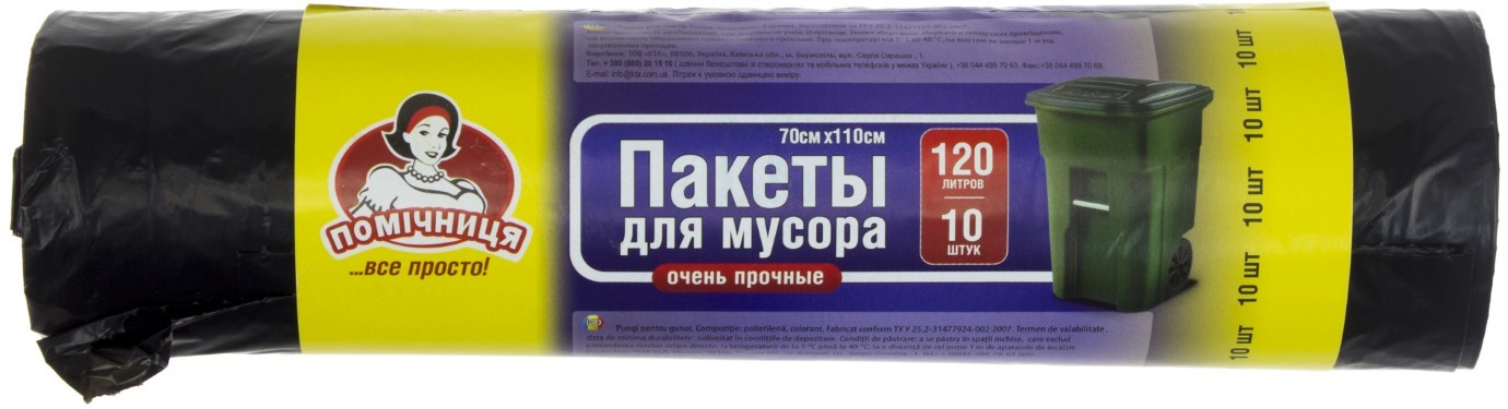 Пакети для сміття "Помічниця" 120л 10шт LDPE №0194(25)