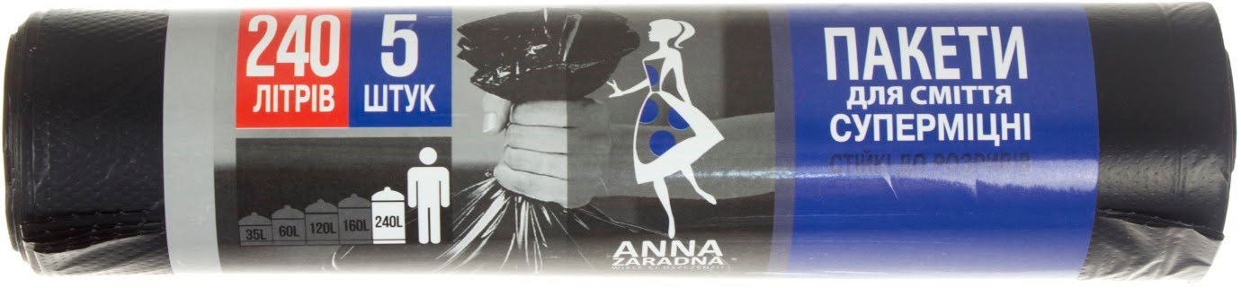 Пакети для сміття "Sweet home/Anna Zaradna" 240л 5шт чорн. LDPE №2389(20)