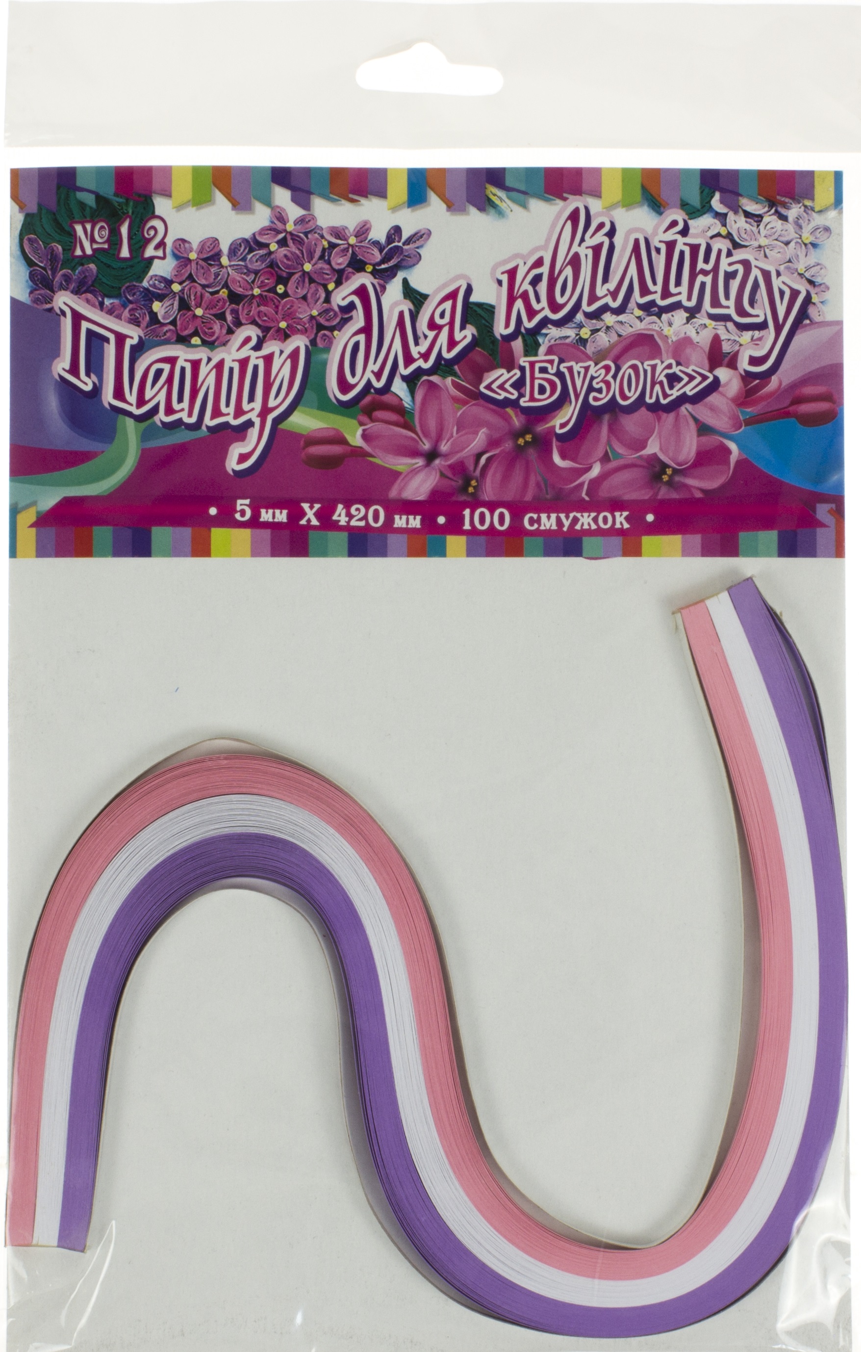Папір для квілінгу №12 4кольор. 5х420мм "Бузок" №УП-63/Рюкзачок/(20)