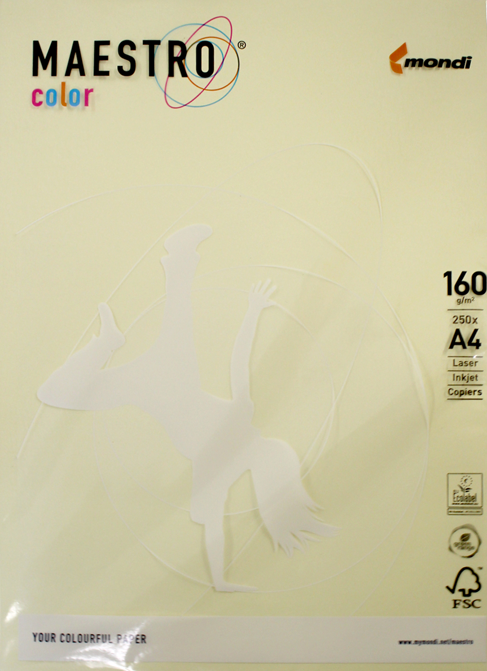 Папір кольор. А4 160г/м Maestro Color Pastell BE66 Vanilla (ванільний)(250)(1250)