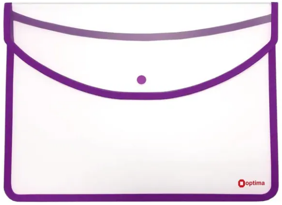 Папка-конверт "Optima" №O35258 А4 на кнопці фіолетовий кант, прозора(1)(30)