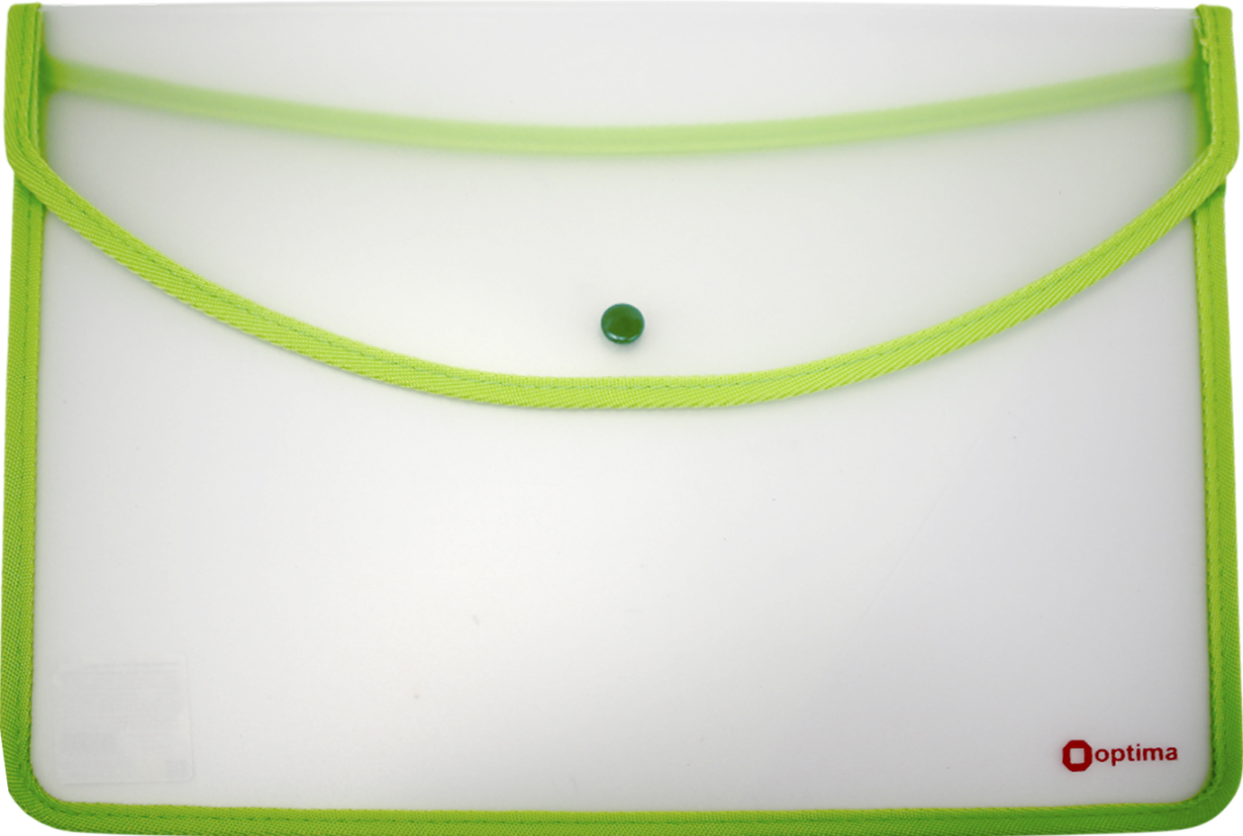 Папка-конверт "Optima" №O35259 А4 на кнопці салатовий кант, прозора(1)(30)
