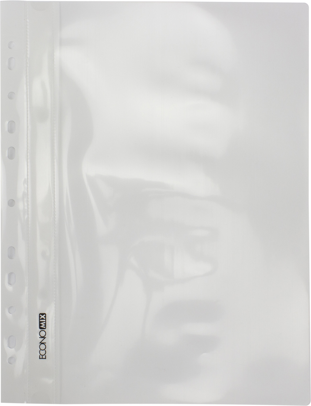 Папка-швидкозш. "Economix" №E31510-14 А4 з прозор.верхом,з перфор.,глянц. біла(10)(300)