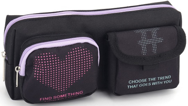 Пенал 1від.,2карм. б/н,на блиск. чорно/фіолетовий №KJ4076/Мандарин/(30)