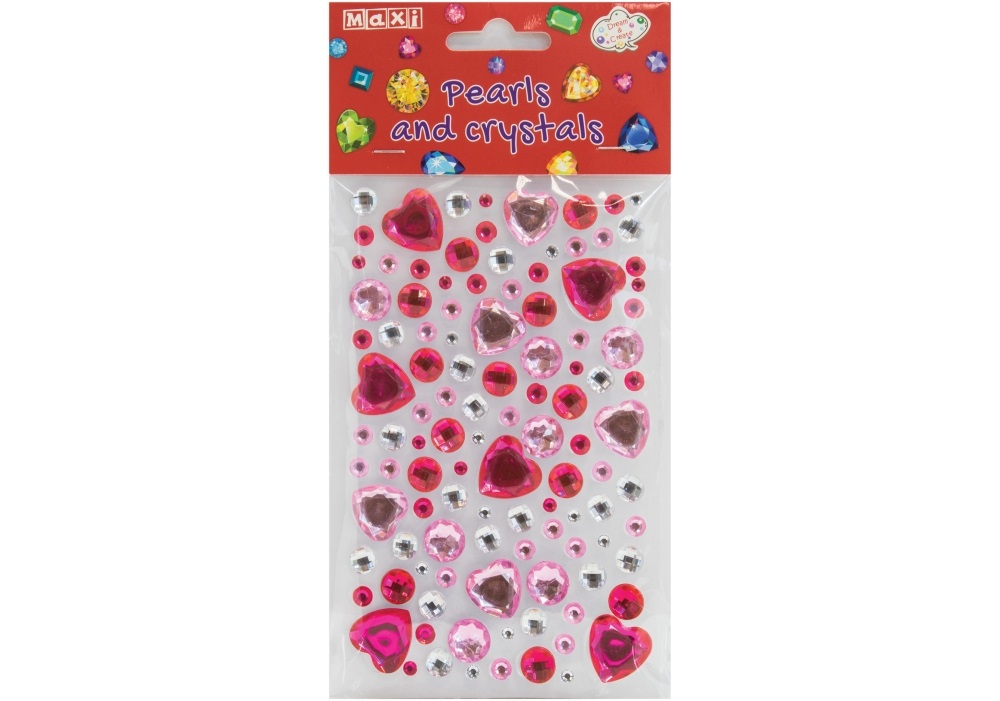 Перлини та стрази "Maxi" самоклеючі,асорті: перлини та червоні серця №MX61605-19(50)