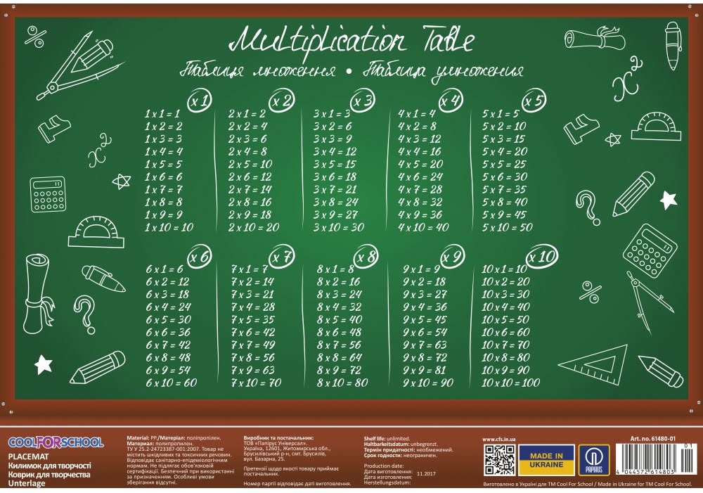 Підкладка для столу "CoolForSchool/Maxi"№CF61480-01/MX61480-01 Таблиця множення А3(8)(160)