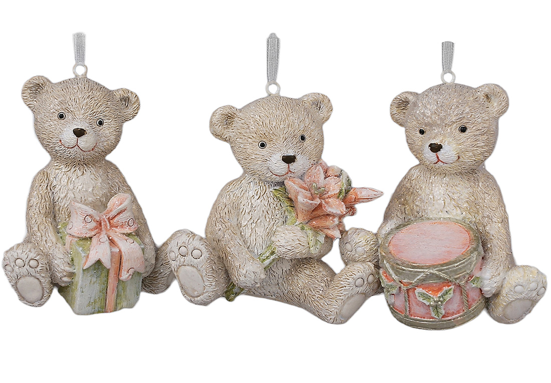 Підвіска полістоун "Ведмедик Тедді" 7,5х8см,персиково-рожевий №K07-428/Bonadi/(6)