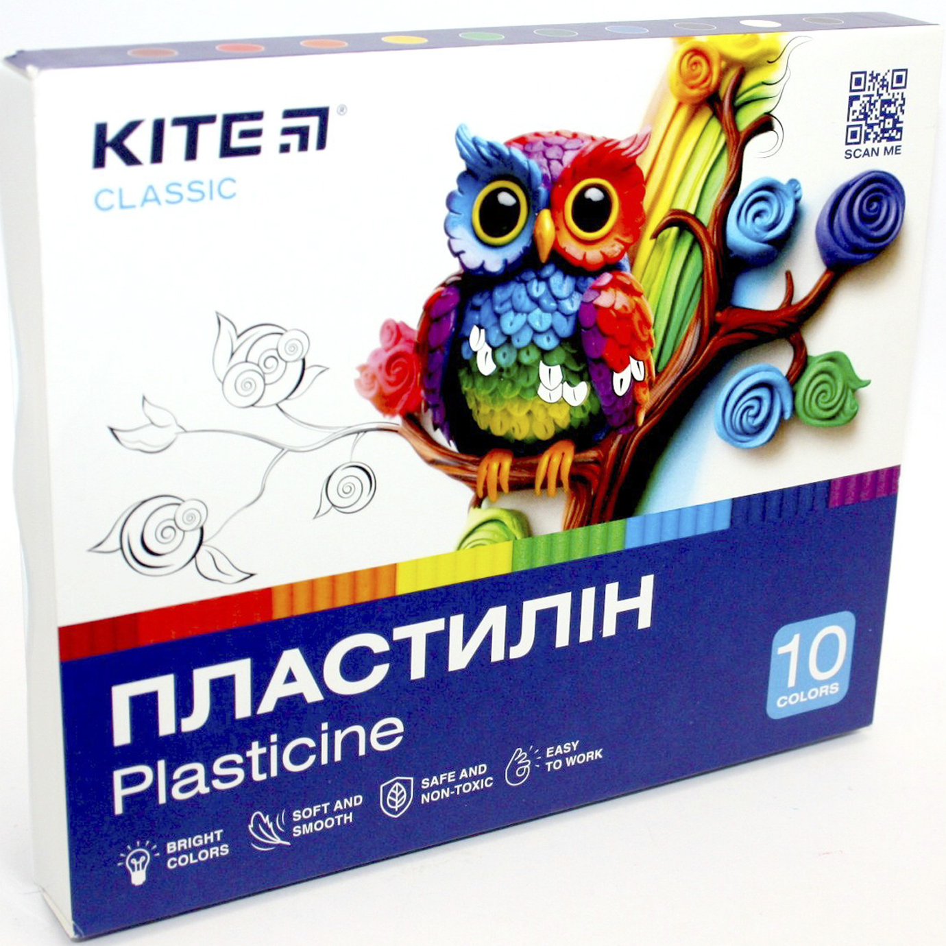 Набір пластиліну Kite Classic 10 кольорів в картонній упаковці. Пластилін серії Kite Classic призначений для моделювання та ліплення . Підходить для занять вдома, в школі, садочку, гуртках та майстер-класах. Сприяє розвитку моторики та творчої фантазії у дітей.Завдяки еластичності, насиченим відтінкам та широкій кольоровій гамі працювати та створювати шедеври з пластиліном Kite Classic -легко. Маса набору 200 грам.