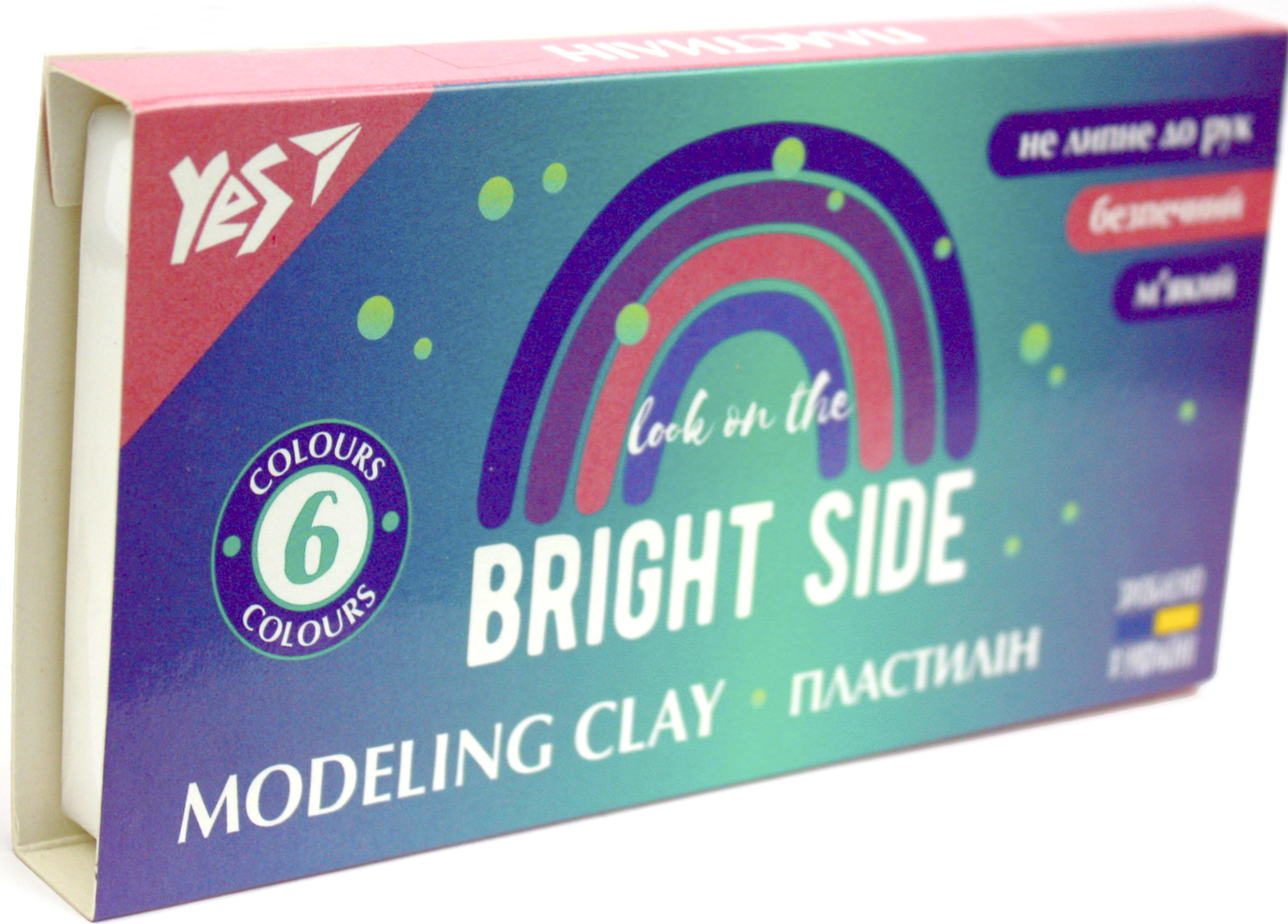 Пластилін ТМ YES призначений для ліплення і моделювання в дитячій творчості. Має яскраві кольори, які легко змішуються між собою. Не липне до рук. Безпечний для дітей (якщо застосовувати за призначенням). Нетоксичний. Не містить шкідливі речовини. - Склад: церезін, парафін, олія, крохмаль, барвники; - Набрір з 6 кольорів. - Вага нетто: 120 грам Робота з пластиліном розвиває логіку, уяву, творчі здібності, дрібну моторику рук, тактильне сприйняття та концентрацію у дитини. Пластилін допоможе зробити реальністю різноманітні фантазії дитини.