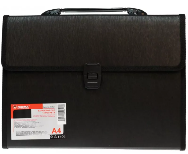Портфель "Norma" №5052 А4 13від.,з реєстрами (чорний)(1)(10)(40)