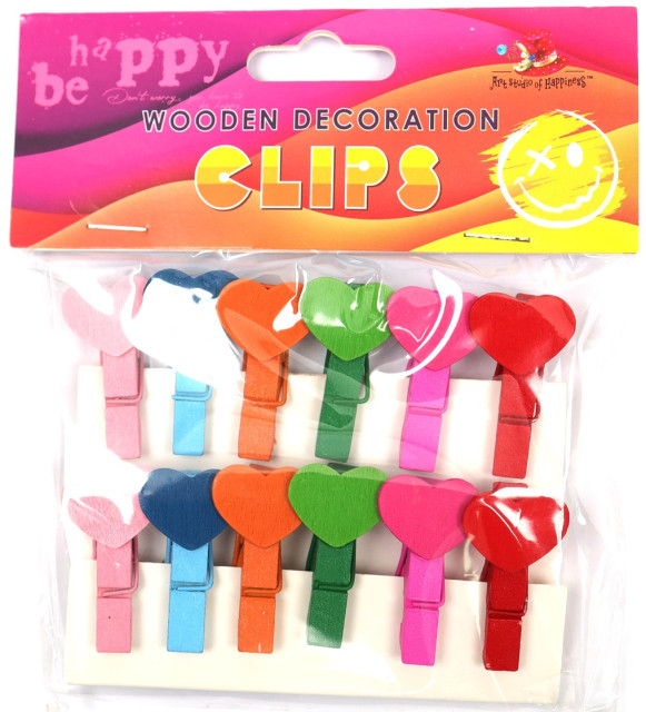 Прищіпки дерев'яні для декорування сердечка,12шт,асорті №200132/Мандарин/(1)(24)