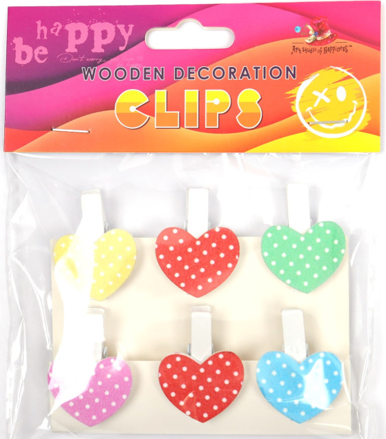 Прищіпки дерев'яні для декорування "Сердечка в горошок" 6шт, 35х6мм №200184/Мандарин/(1)