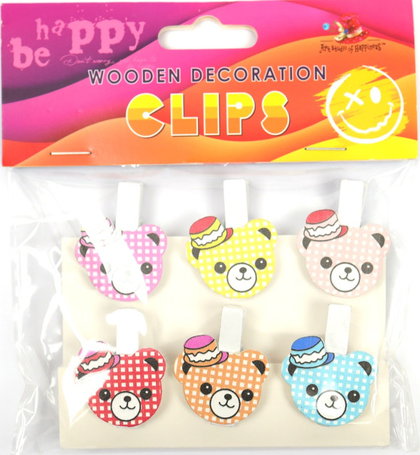 Прищіпки дерев'яні для декорування "Ведмедики" 6шт №200180/Мандарин/(1)(24)
