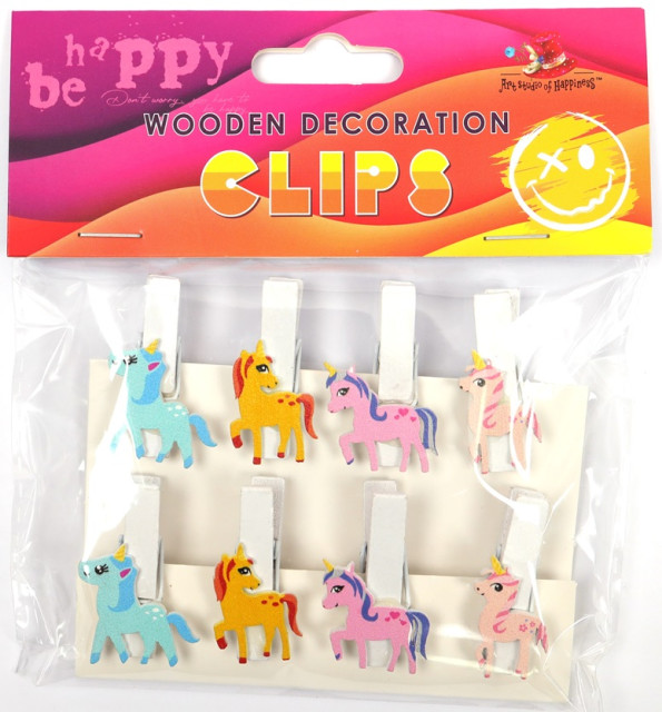 Прищіпки дерев'яні для декорування "Єдинороги" 8шт, 35х6мм №200160/Мандарин/(1)(24)
