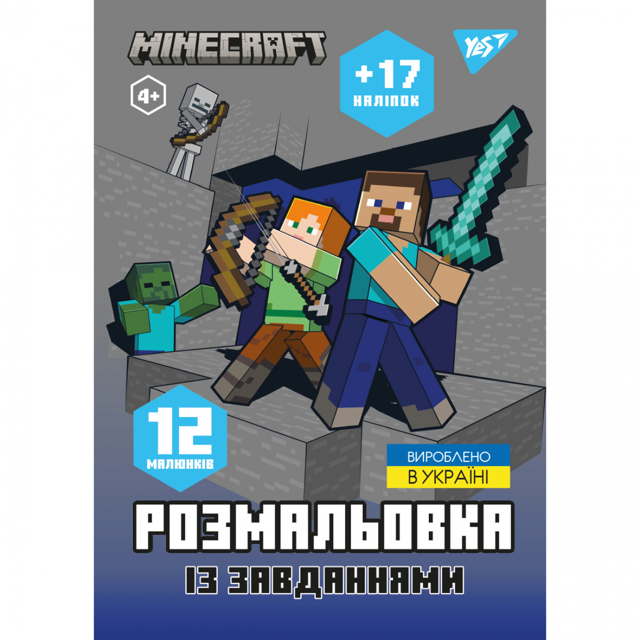 Розмальовка А4 "Minecraft" 12стор. з наліпками та завданнями №743222/Yes/(100)