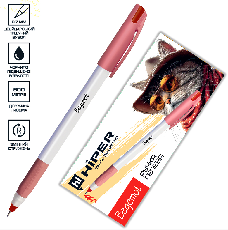 Ручка гел. "Hiper" №HG-230 Begemot 0,7мм червона(10)(180)