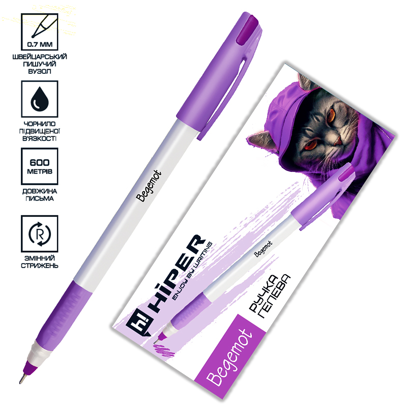 Ручка гел. "Hiper" №HG-230 Begemot 0,7мм фіолетова(10)(180)
