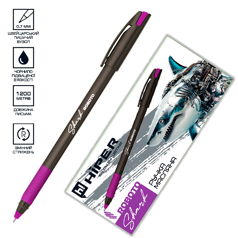 Ручка кульк. масл. "Hiper" №HO-330 Shark Roboto 0,7мм фіолетова(10)